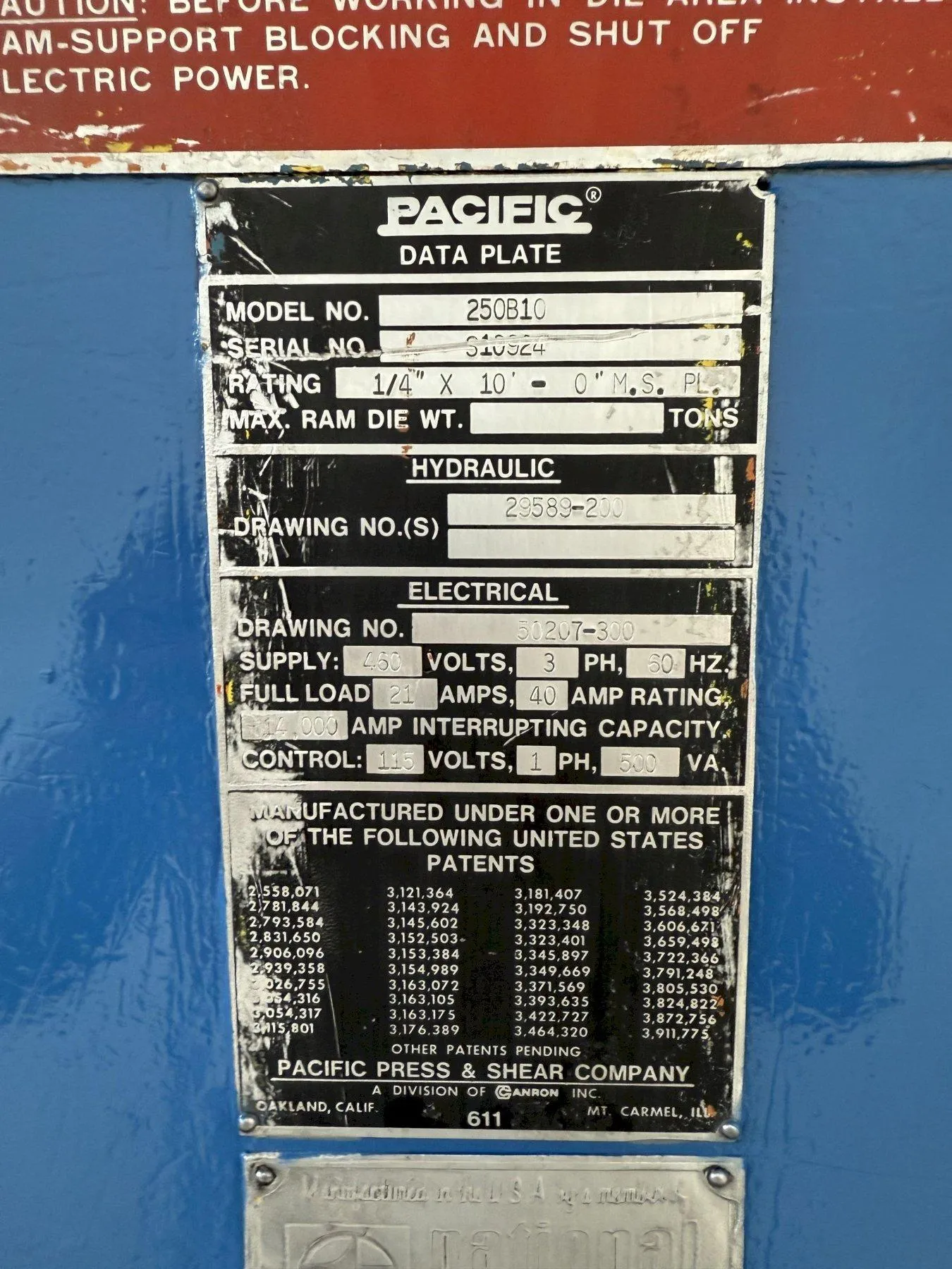 10' X 1/4" ACCURPRESS MODEL #825010 LP HYDRAULIC SHEAR: YOBRO #24451