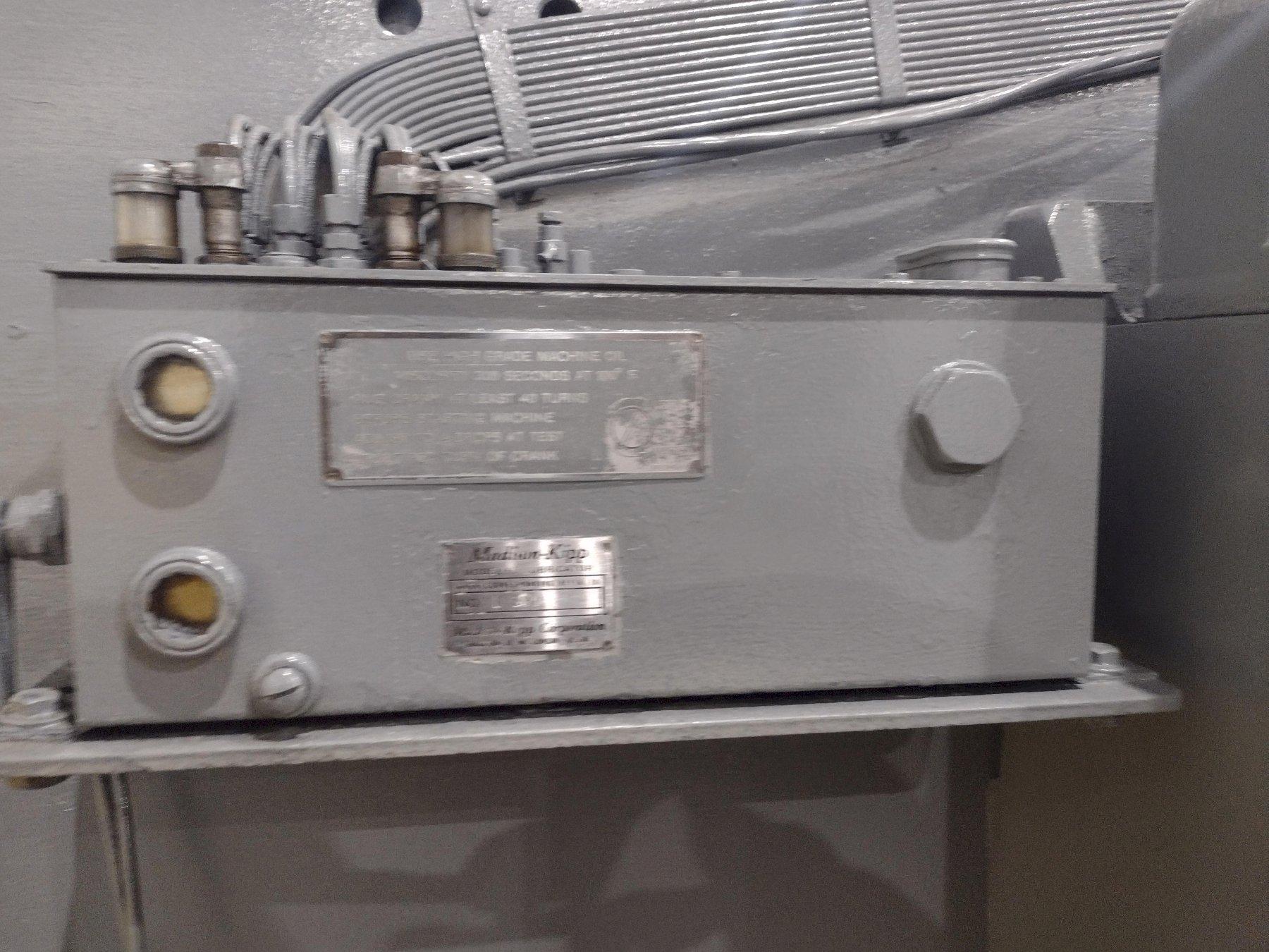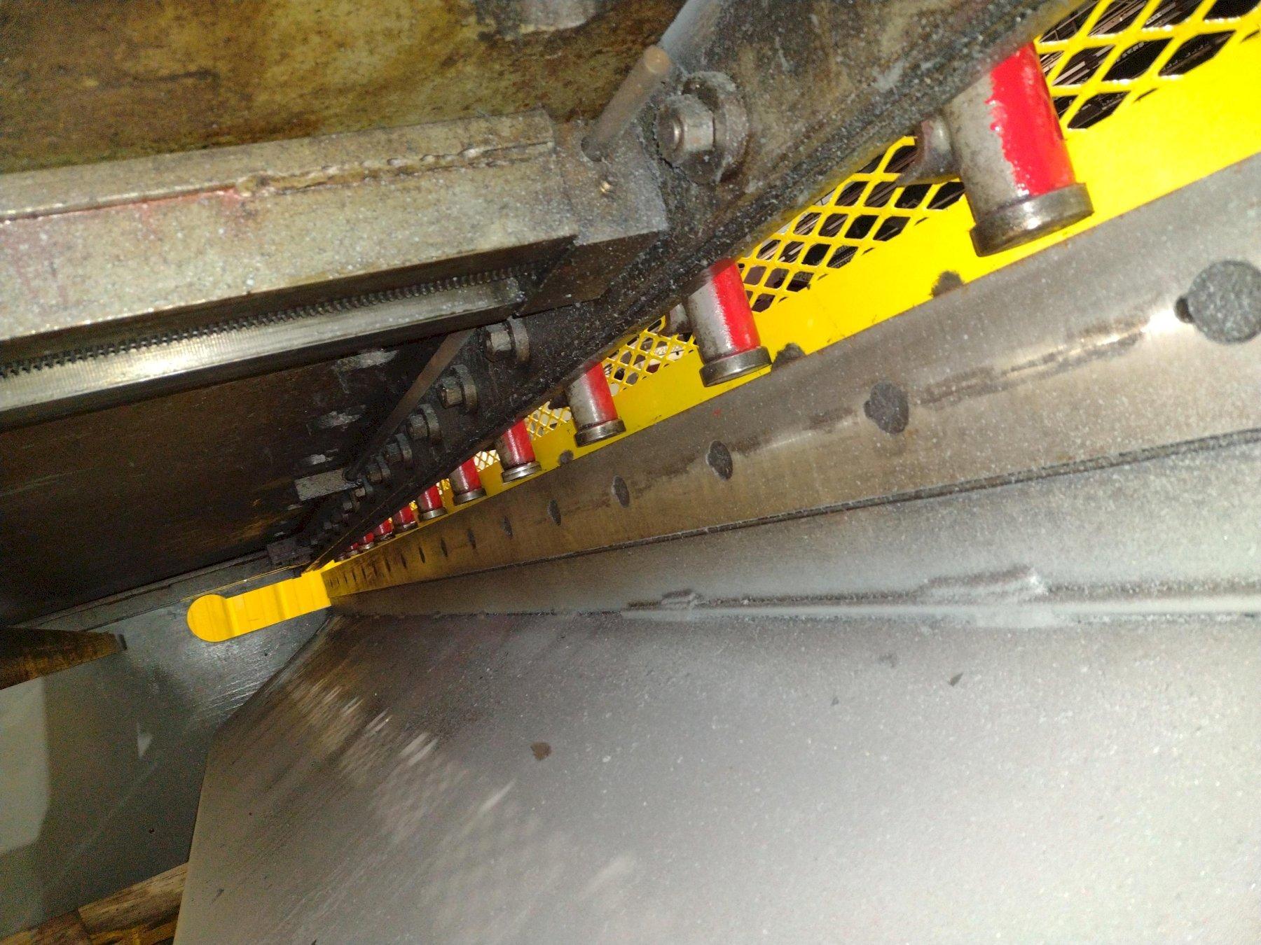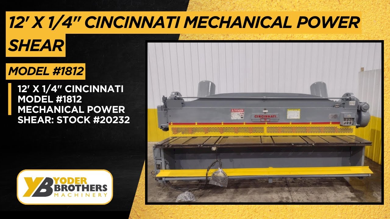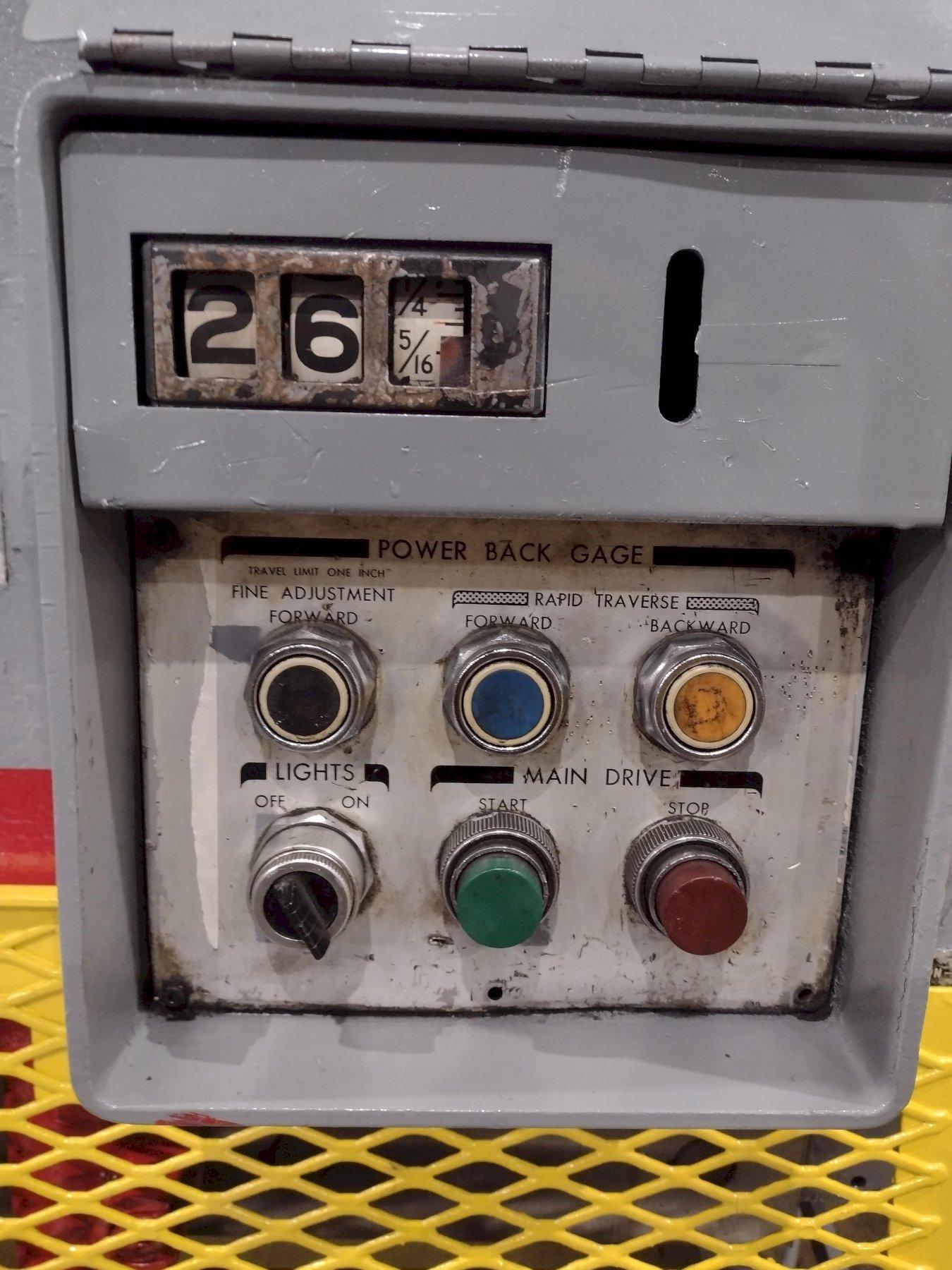 SERIAL ............................ 33899MODEL ............................. 1812CAPACITY .......................... 12' X 1/4"DISTANCE BETWEEN HOUSINGS ......... 12'3"STROKES PER MINUTE ................ 60FRONT OPERATED POWER BACK GAUGE ... 36"DEPTH OF GAP ...................... 18"NUMBER OF HOLD DOWNS .............. 13TOTAL HOLD DOWN FORCE ............. 9 TONSSQUARING ARM ...................... 12'FRONT ARM SUPPORT ................. 3CENTRAL LUBRICATION ............... YESMOTOR ............................. 15 HORSEPOWER