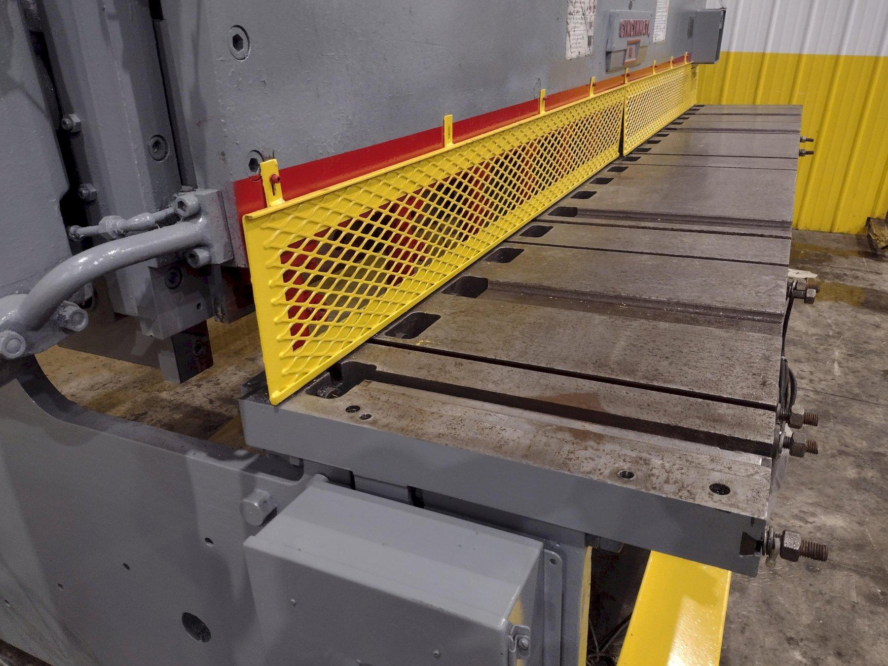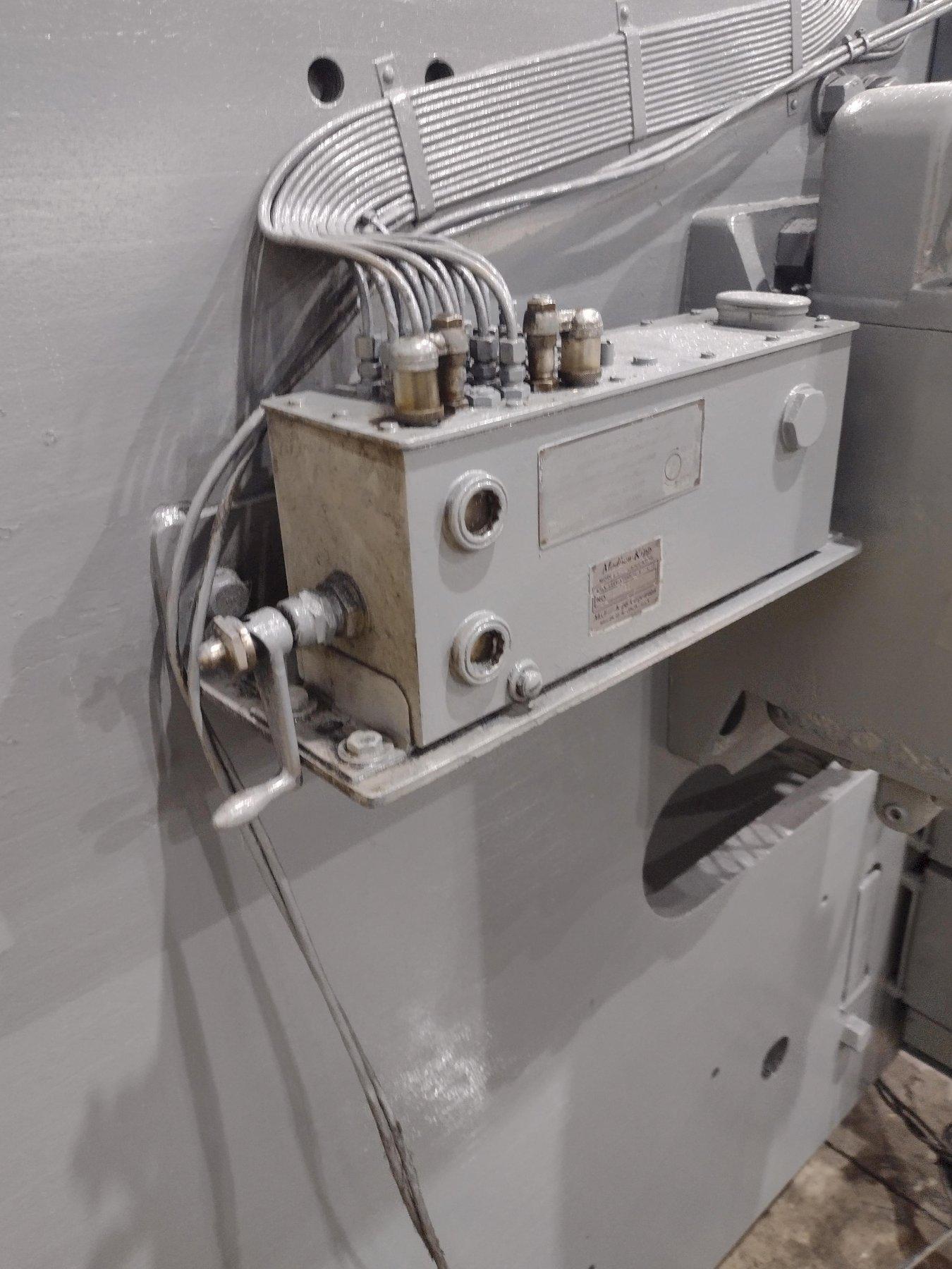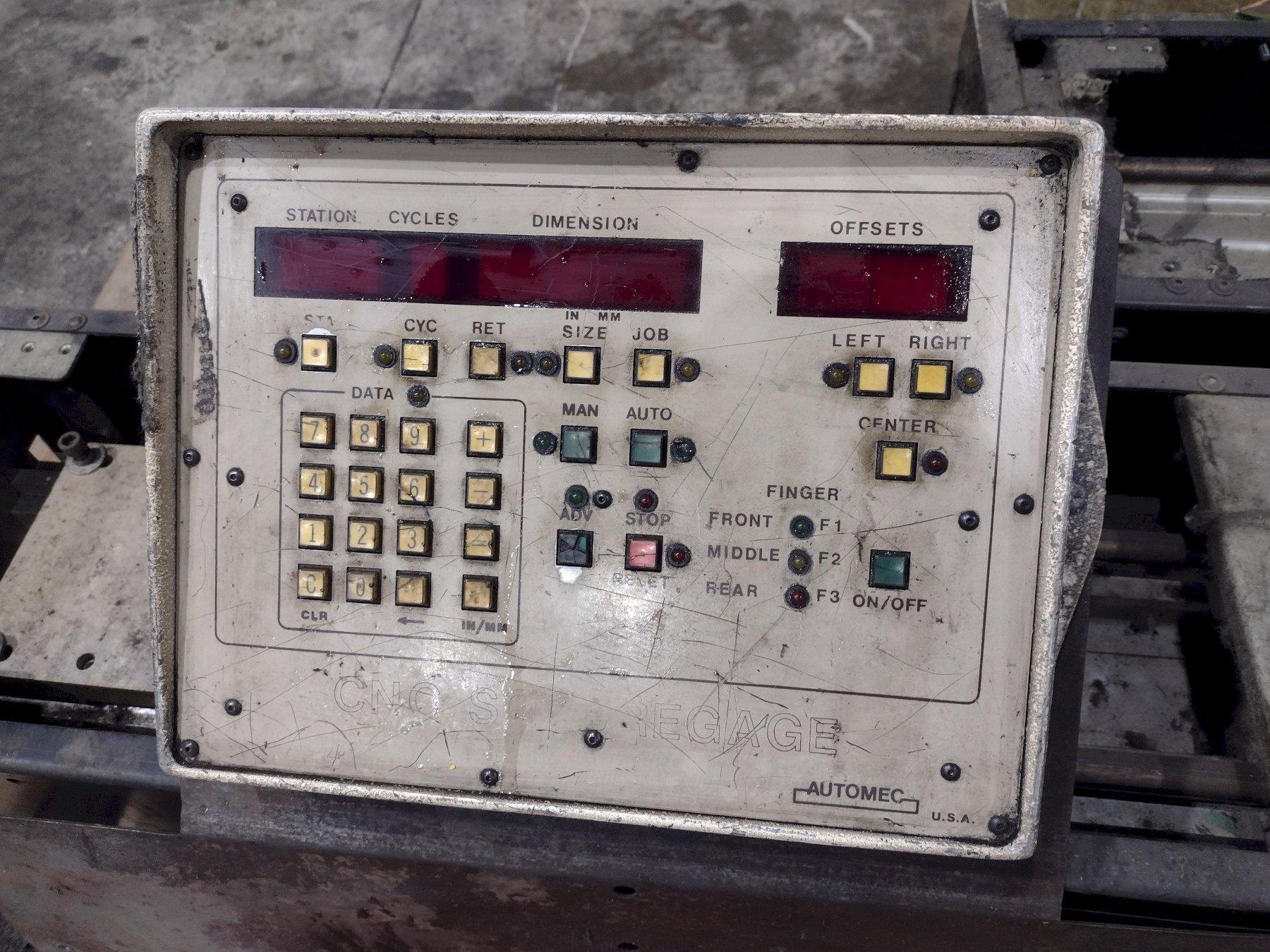 SERIAL ............................ 33899MODEL ............................. 1812CAPACITY .......................... 12' X 1/4"DISTANCE BETWEEN HOUSINGS ......... 12'3"STROKES PER MINUTE ................ 60FRONT OPERATED POWER BACK GAUGE ... 36"DEPTH OF GAP ...................... 18"NUMBER OF HOLD DOWNS .............. 13TOTAL HOLD DOWN FORCE ............. 9 TONSSQUARING ARM ...................... 12'FRONT ARM SUPPORT ................. 3CENTRAL LUBRICATION ............... YESMOTOR ............................. 15 HORSEPOWER