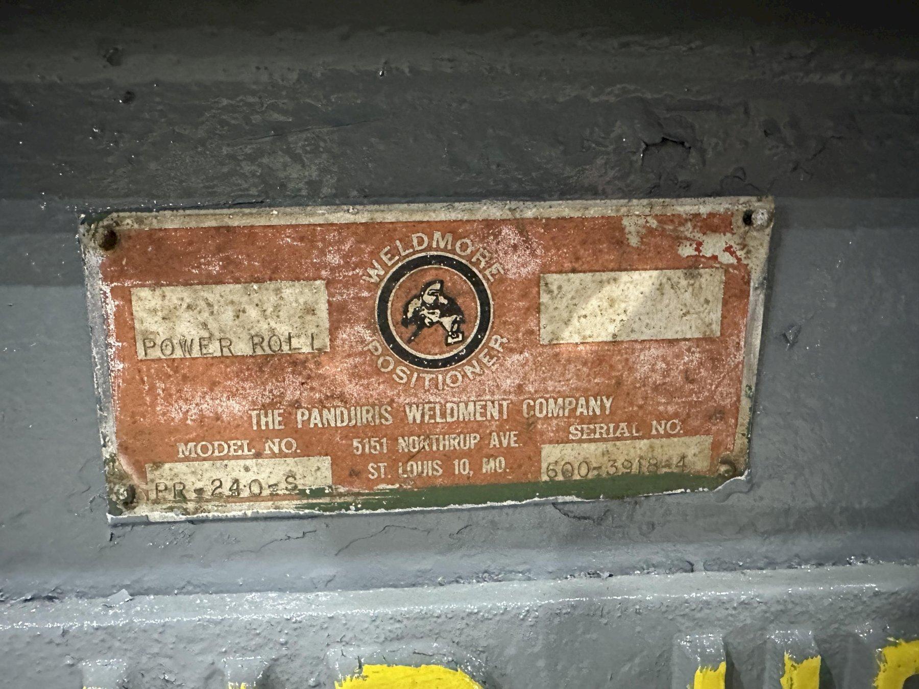 CAPACITY .......... 120 TON; 1 DRIVE & 1 IDLERSTURNING CAPACITY ... 240,000 LBDIAMETER RANGE ..... 12" TO 250"WHEELS ............. RUBBERWHEEL DIAMETER ..... 20"WHEEL FACE ......... 25"ROLL SPEED ......... 2 TO 48 IPMOVERALL HEIGHT ..... 32" TO TOP OF WHEELS