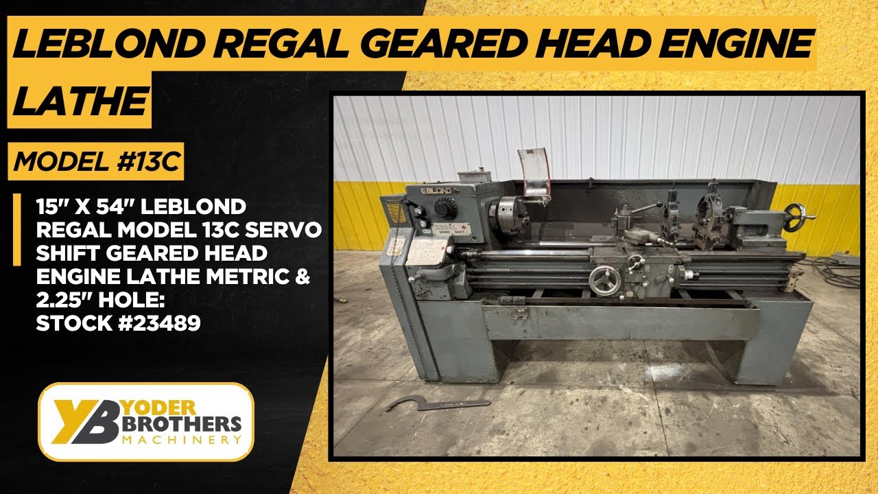 SERIAL .......................... 13c-225MODEL ........................... 15" REGAL SERVO SHIFTSWING OVER BED - ACTUAL ......... 15-1/2"SWING OVER CROSS SLIDE .......... 9-1/2"DISTANCE BETWEEN CENTERS ........ 54"HOLE THRU SPINDLE ............... 2-1/4"SPINDLE SPEEDS .................. (12) 45 TO 1800 RPMFEEDS ........................... (48) .0018 TO .106 IPRTHREADS ......................... (48) 4 TO 224 TPICHUCK ........................... 10" 3-JAWTAPER ATTACHMENT ................ YESCHIP PAN ........................ YESMICROMETER CARRIAGE STOP ........ YESTHREAD DIAL ..................... YES