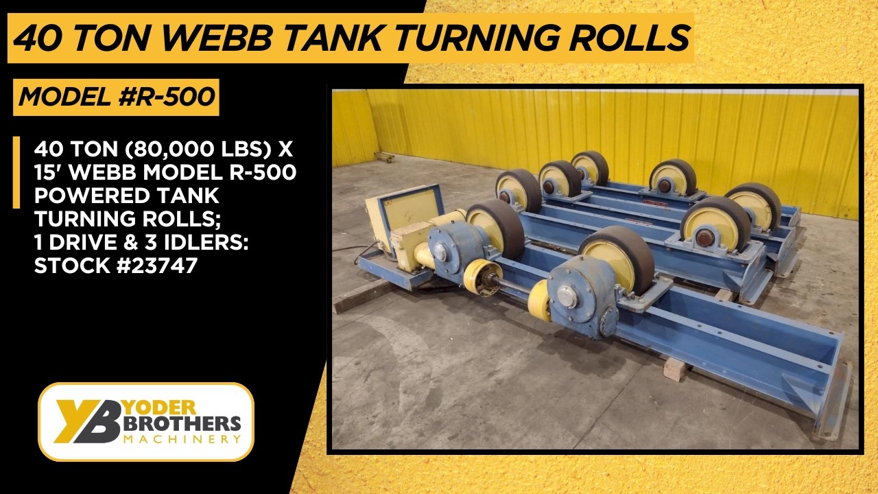 Diameter Size up to 15’Idler units (quantity 3) Model R-500 – 20,000lb Capacity each- up to 15’ Diameter Size