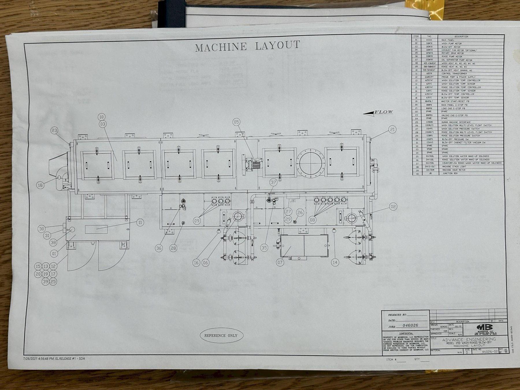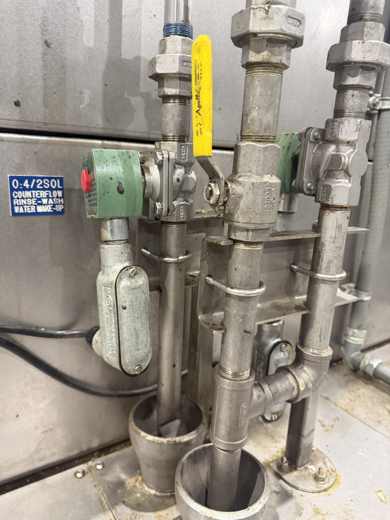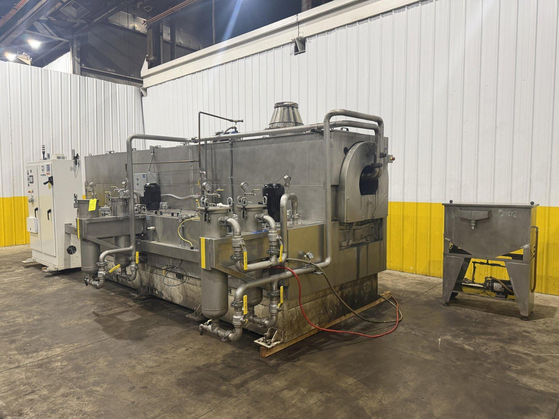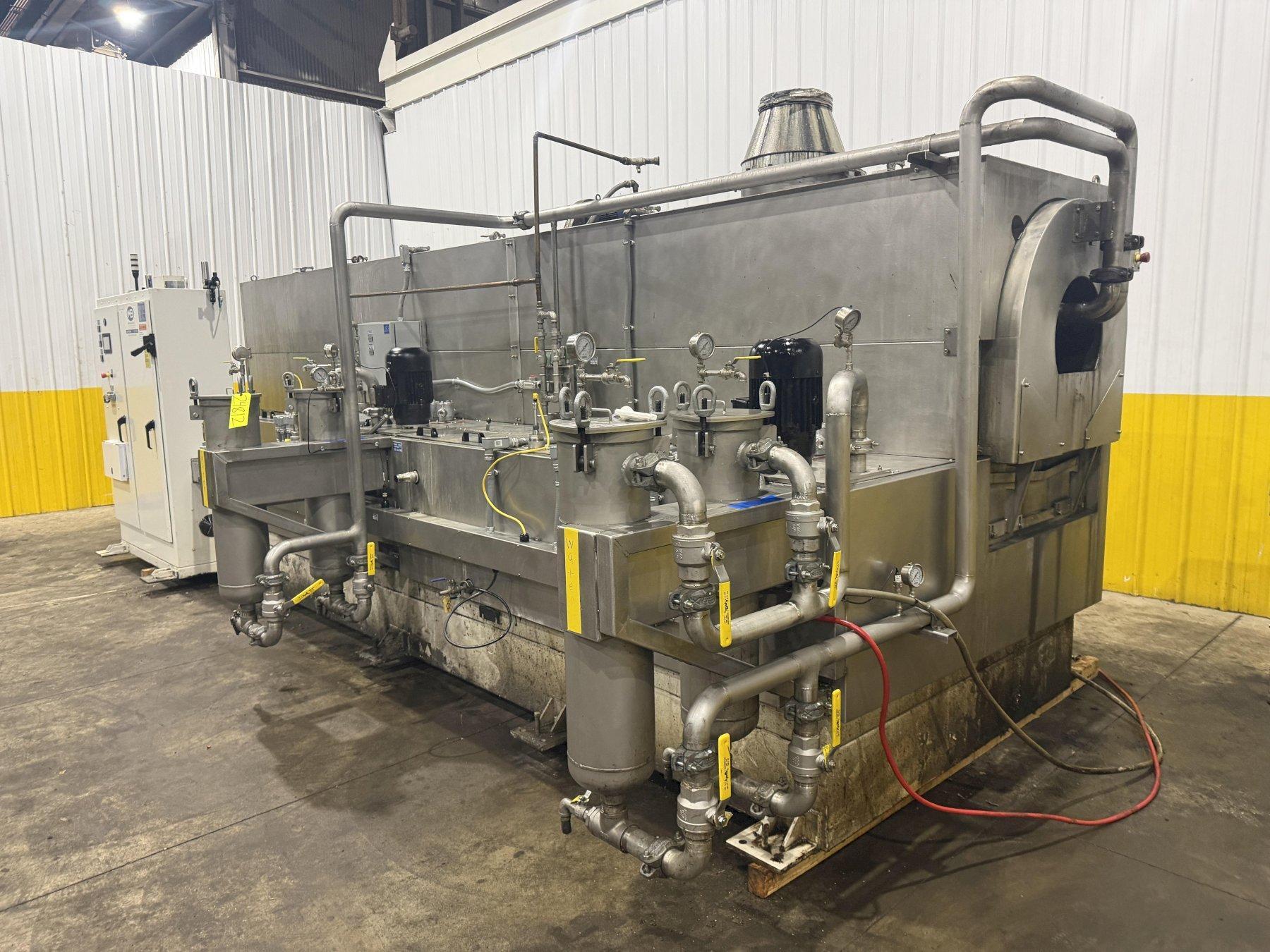 WELDED STEEL FRAME BASE ...................... YES3-STAGE PARTS WASHER ......................... YESOVERALL SIZE ................................. 80" x 84" x 20'ROTARY TROMMEL SCREEN DRUM ................... 24" Dia. x 20'FIXED SPRAY NOZZLES .......................... YES(2) WASH CHAMBERS ............................ YESRINSE CHAMBER ................................ YESDRY OFF CHAMBER .............................. YESNATURAL GAS FIRED BURNER ..................... YESSTAINLESS STEEL PANEL CONSTRUCTION ........... BOLT TOGETHERSTAINLESS STEEL WASH/RINSE TANKS ............. YESCLOSED LOOP CIRCUTLATION/FILTRATION SYSTEM ... YES