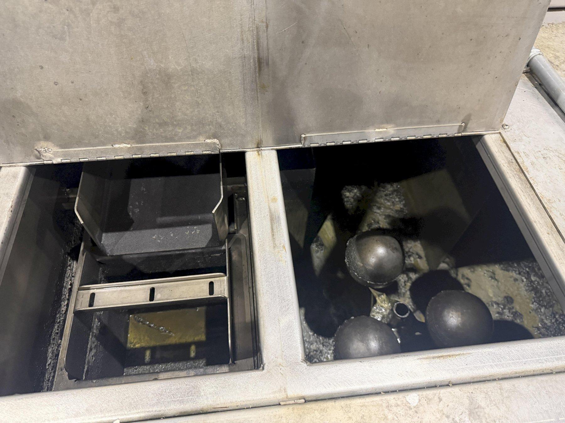 SLUDGE SEPARATORGRAVITY BOTTOM TANK AGITATORS ................ 300 GALLONCHAIN LINK CONVEYOR FOR DISCHARGE ............ 20" x 72"REAR RECIRCULATION TANK ...................... 200 GALLONCIRCULATION PUMPS ............................ YESCONTROL PANEL ................................ YES