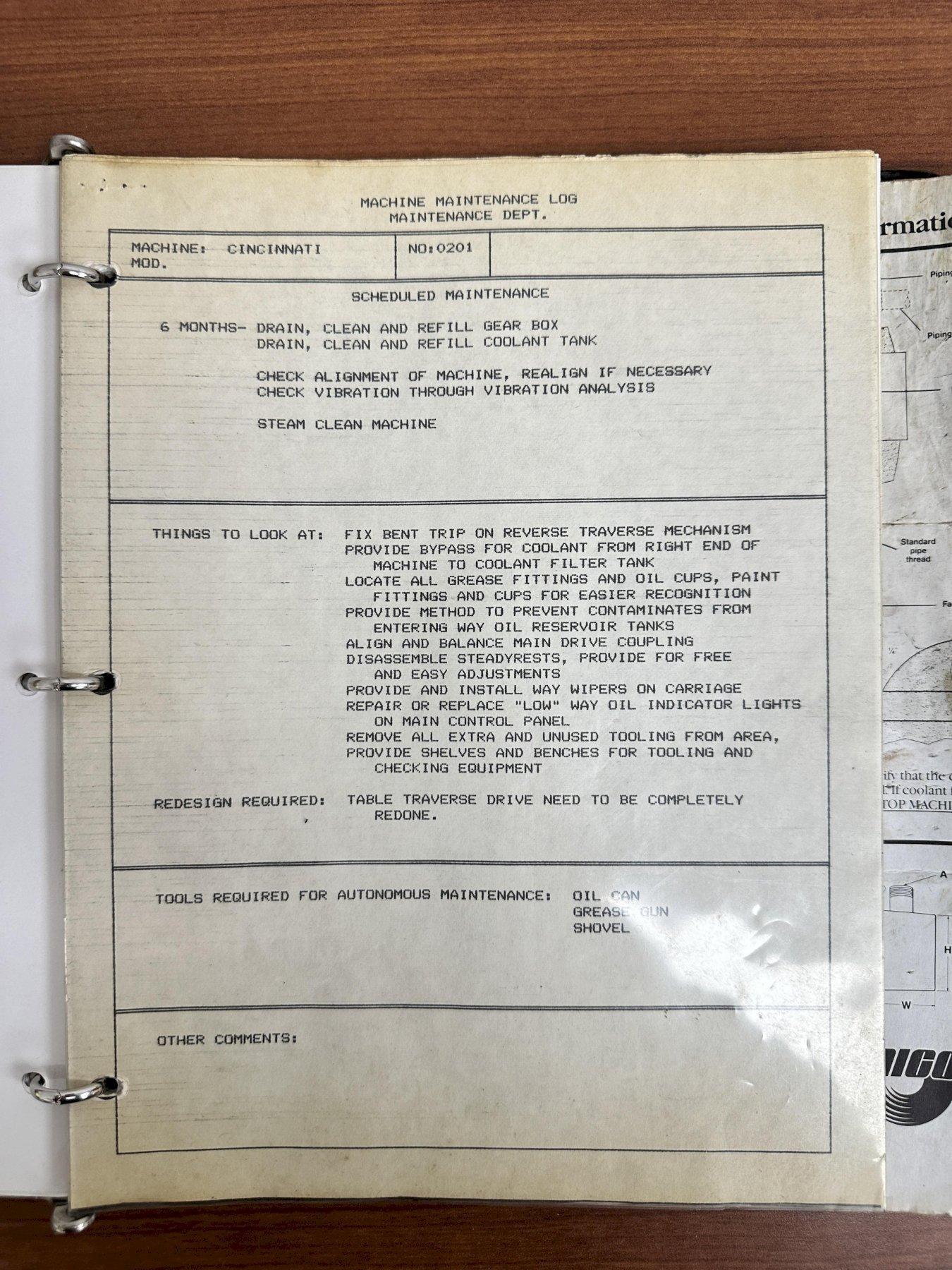 OPERATOR PEDISTAL CONTROL STATION ........ YESCOOLANT .................................. YESSPINDLE MOTOR ............................ 40 HPWORKHEAD MOTOR ........................... 5 HP