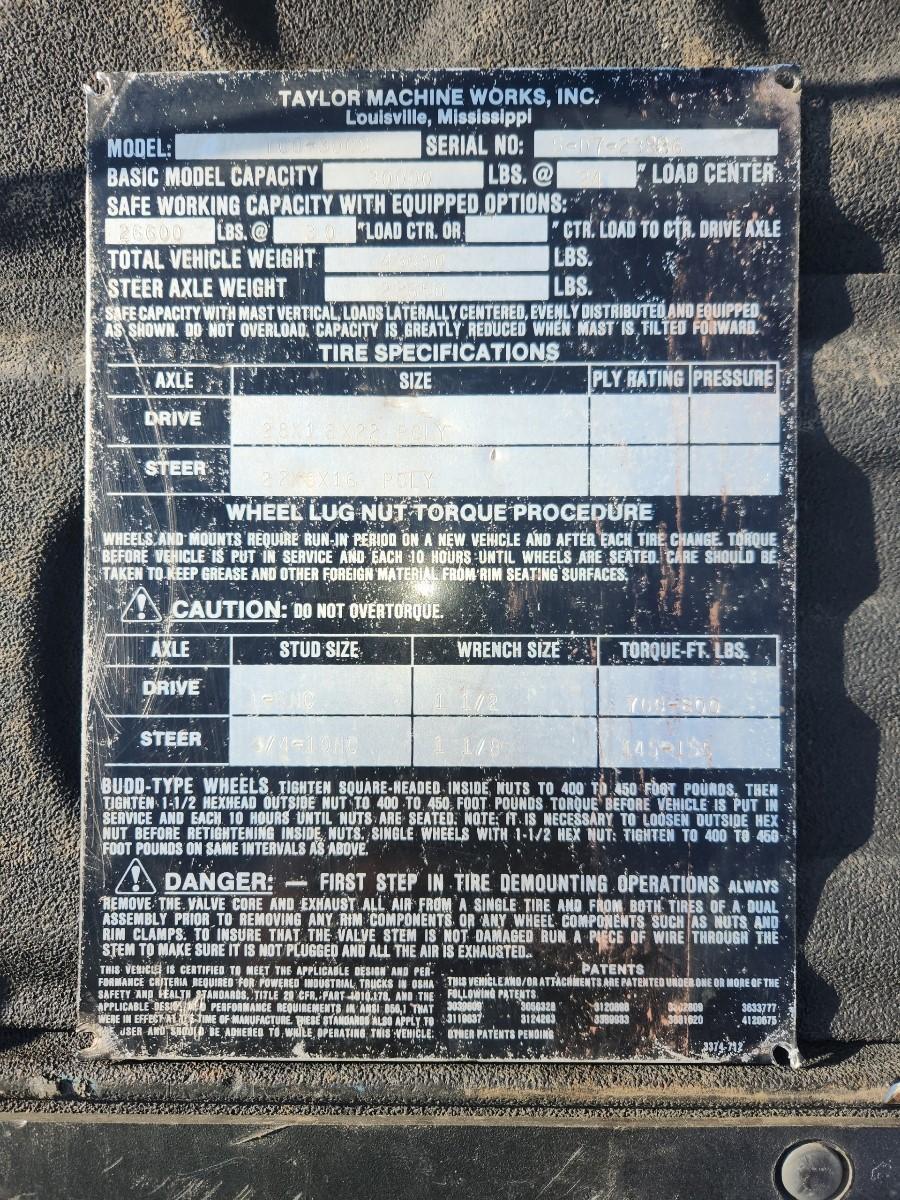 30,000 LBS TAYLOR MODEL #TCO-300S HEAVY DUTY RIGGER FORKLIFT: STOCK #18136