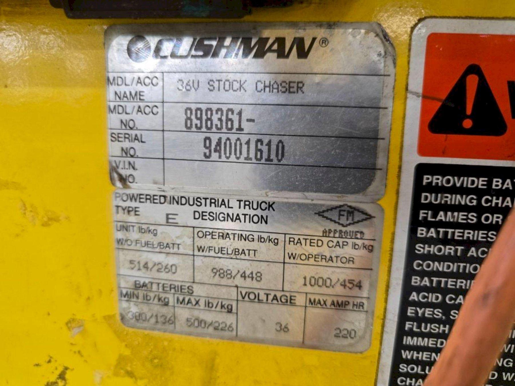 36 VOLT CUSHMAN MODEL 898361 STOCK CHASER/TUGGER CART: YOBRO #24664