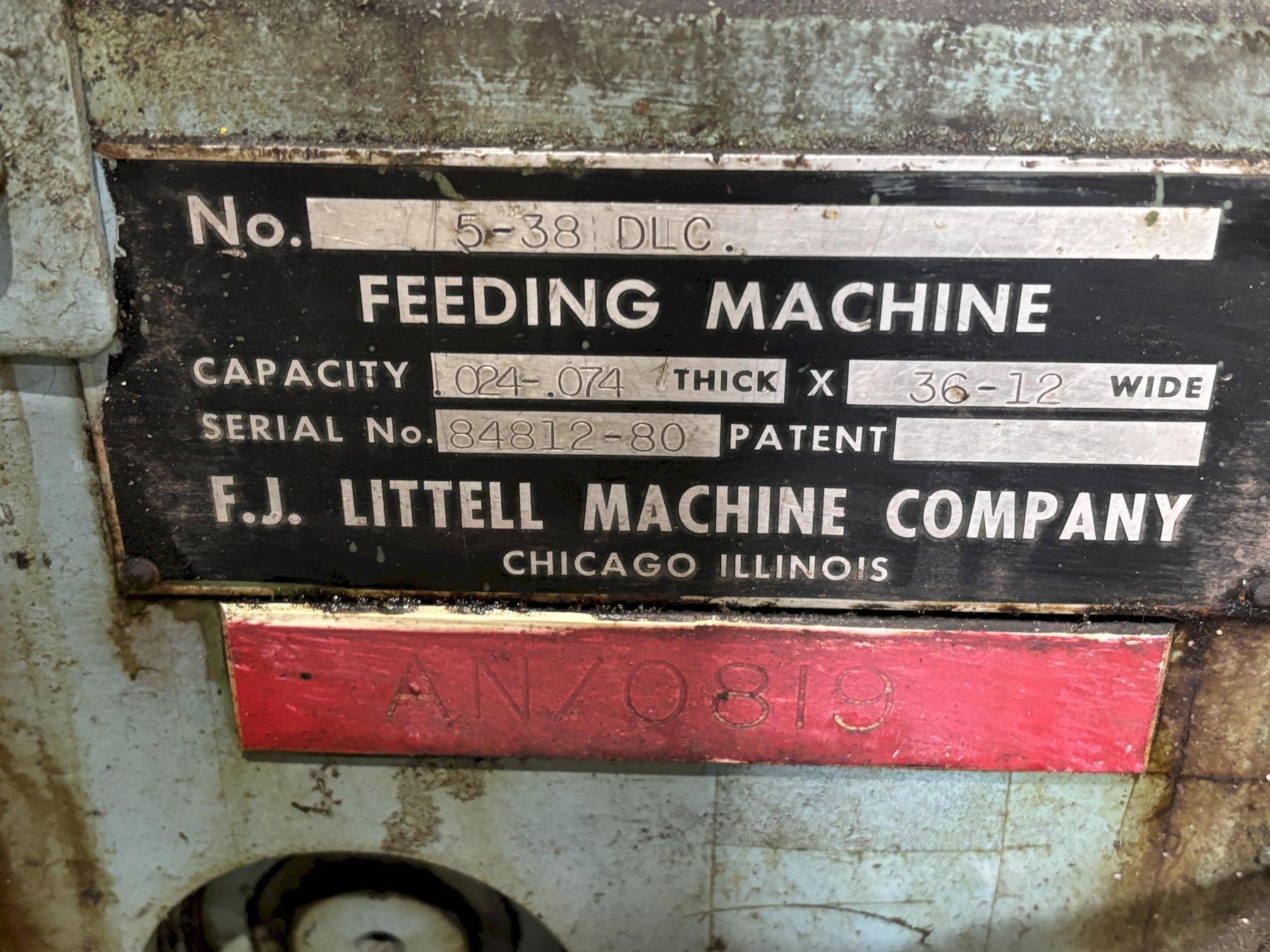 36” X .024 (12” X .074”) LITTELL MODEL 5-38DLC COIL FEEDER: STOCK #21340