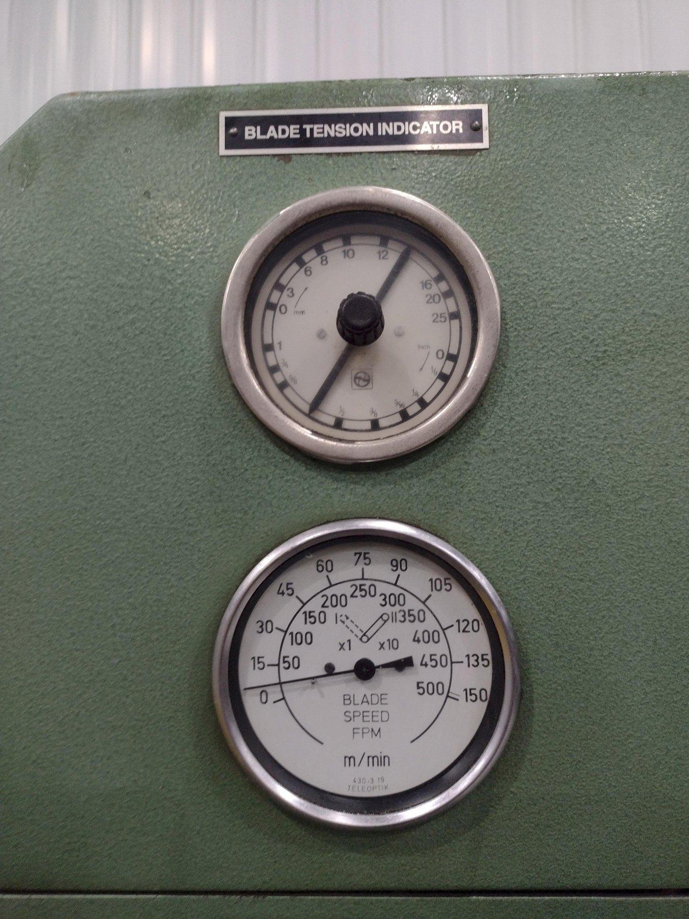 THROAT ......................... 41"BLADE WIDTH RANGE .............. 5/16" TO 3/4"BLADE LENGTH ................... 188"BLADE SPEEDS (VARIABLE) ........ 50 TO 500 FPMMAXIMUM WORK HEIGHT ............ 13"HYDRAULIC FEED TABLE AREA ...... 26-3/8" X 26-3/8"PROTRACTOR HEAD ADJUSTMENTS .... 45 RIGHT & LEFTAUXILIARY WORK TABLE ........... 15-1/2 X 21-1/2"FEED TABLE STROKE .............. 10"BLADE TENSION INDICATOR ........ YESTACHOMETER ..................... YESBLADE WELDER-CUTTER-GRINDER .... MODEL S25BLADE MOTOR .................... 2.2 HORSEPOWER