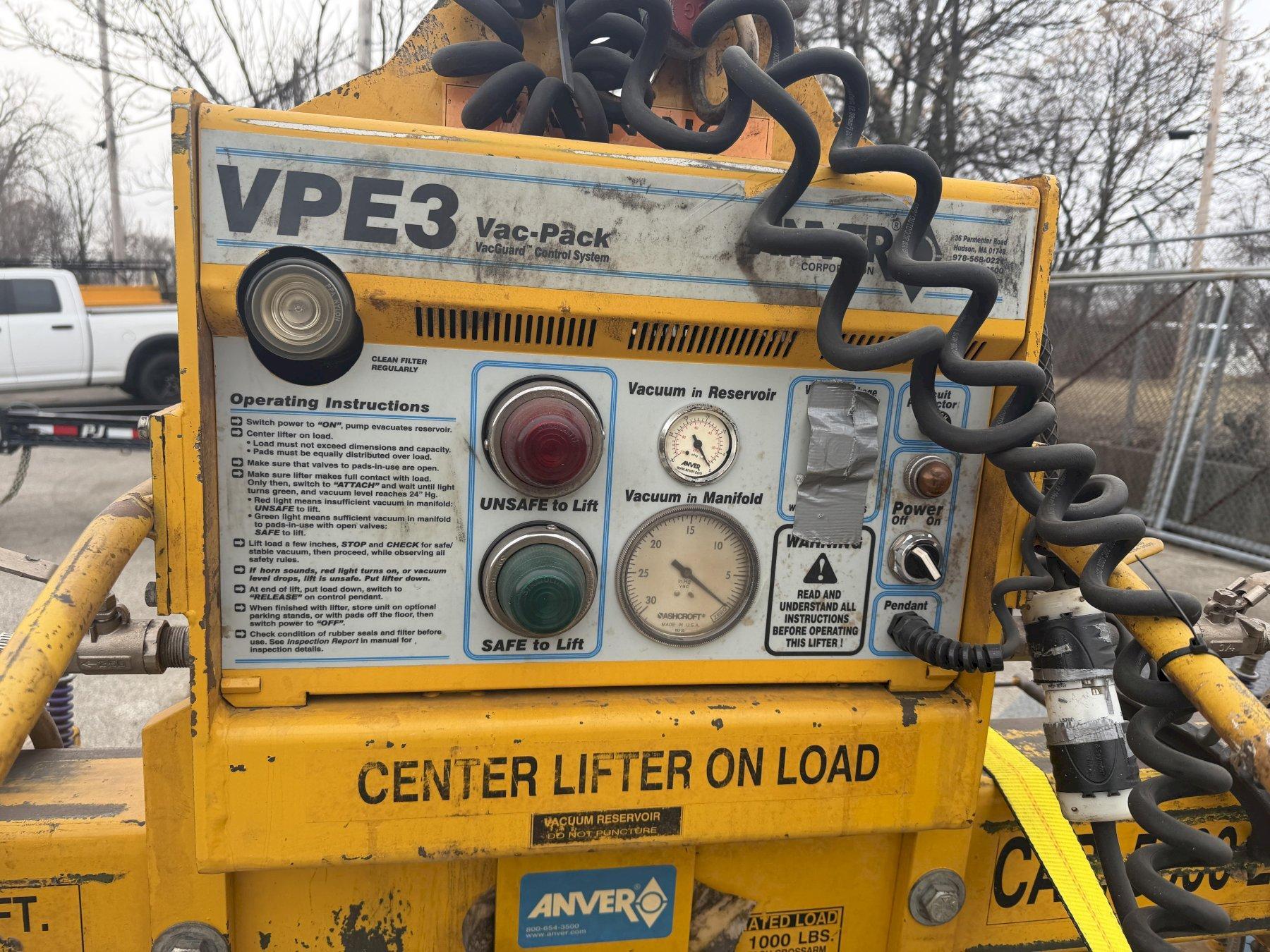 5,000 LBS ANVER MODEL #E500M10-200-5/44 VACUUM SHEET LIFTER:YOBRO #25016