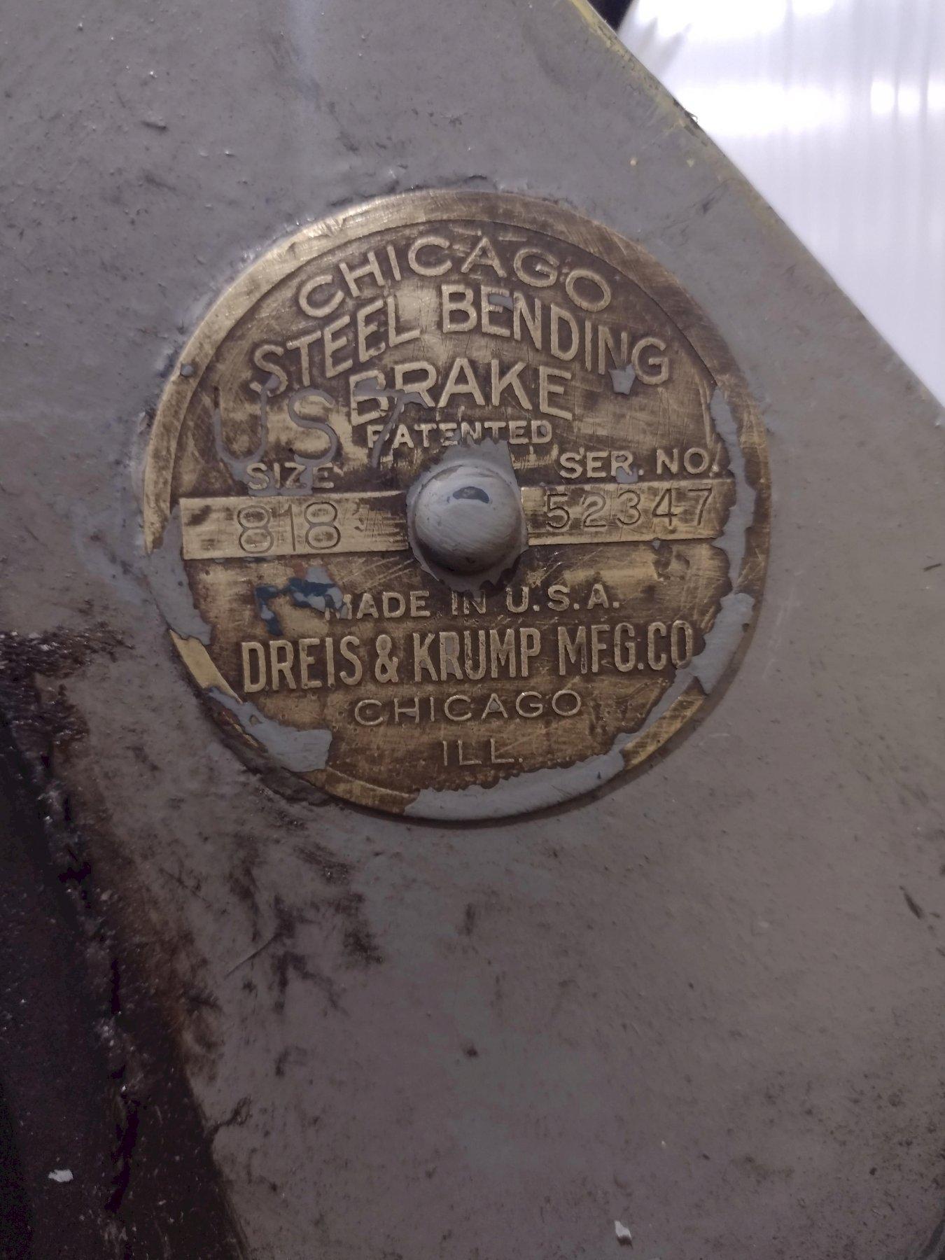8' X 18 GAUGE CHICAGO MODEL #818 MANUAL APRON BENDING BRAKE: YOBRO #24387