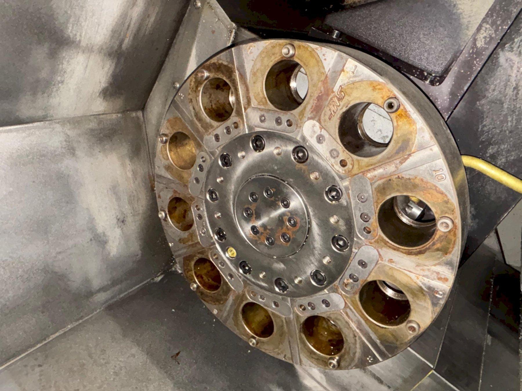 Swing Over Front Apron: 23.0″Swing Over Cross Slide: 9.5″Chuck Size: 5C Collet ChuckTurning Diameter: 10.3″Turning Length: 20″Rapid Feed Rates: 710 IPMSpindle Speeds: 4,000 Max RPMSpindle Nose: A2-6Hole Thru Spindle: 3.0″Hole Thru Draw Tube: 2.06″Turret Capacity: 10 StationTurret Index Time (One Tool): 1 SecondTurret Travels (X,Z): 8.45″ / 20″Turret Index Time: 1 Second Per StationTailstock Travel: 20″Tailstock Quill Diameter / Taper: #4 Morse TaperRapid Feed Rates: 1,000 IPMHaas 32-Bit CNC ControlLive Milling on TurretFull C-Axis Spindle (.001 Degree)Programmable TailstockFloppy DriveChip AugerTool PresetterCoolant System with Pump and TankSPINDLE VECTOR DRIVE 20 HP