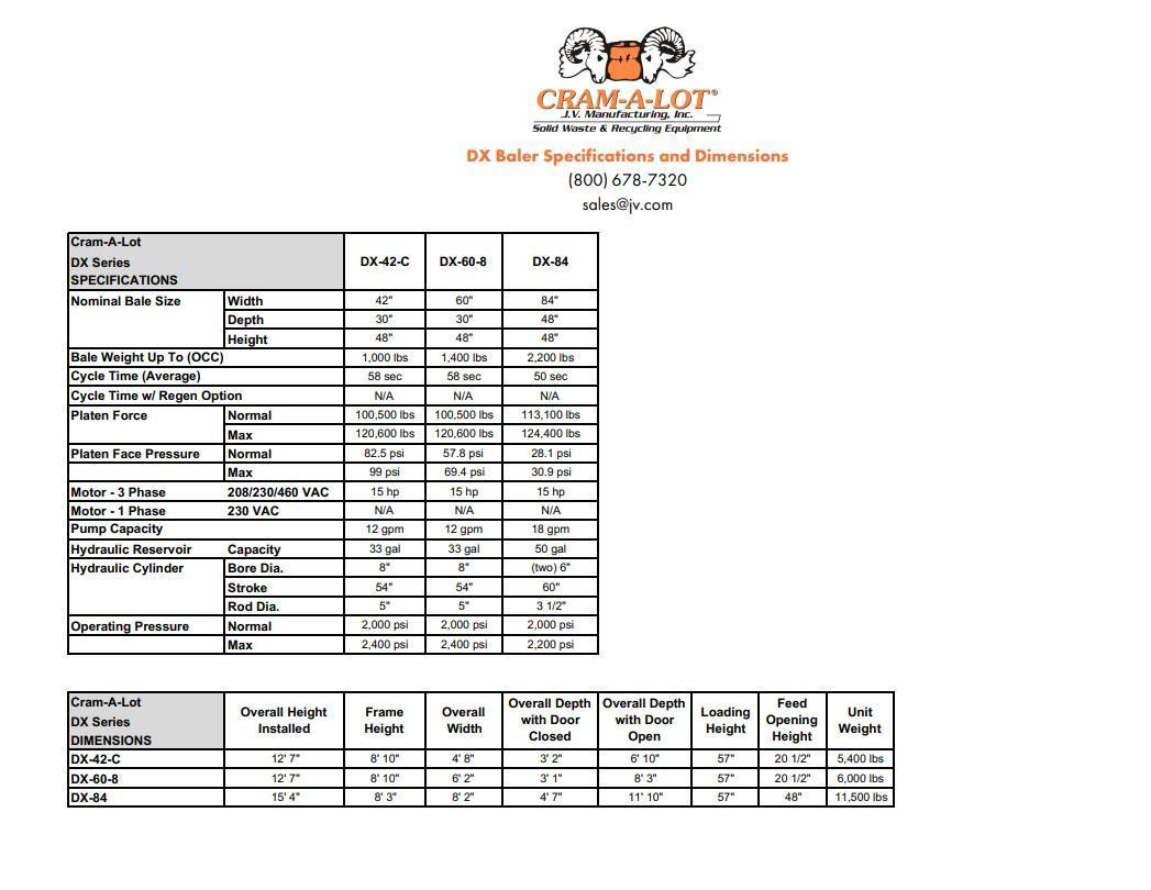 BALE SIZE .......................... 84" W X 48" D X 48" H