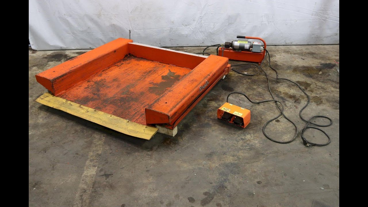 This Presto XZ44-20 Platform Lift is an industrial grade, hydraulic scissor lift table with a 44"W x 48"L platform and a 2000 lb. capacity. The low-profile design makes it ideal for loading with a pallet truck. Note: The front edge flexible toe guard is missing and not included. This item has been tested and is in good working condition. Please contact us if you have any questions.Introduction:These industrial grade, hydraulic scissor lift tables feature a unique pan-style platform that sits only 3/8" above the floor when fully lowered. This low-profile design allows them to be loaded and unloaded by a hand pallet truck. Use them in facilities where fork lifts or stackers aren't available. An additional advantage of hand pallet truck accessibility is the opportunity for workers to function at their own pace without having to wait for a fork lift and certified operator to load the lifts for them. Workers can position work at a comfortable level to help improve efficiency, productivity and worker safety. Ideal for assembly work and machine operations. Constructed of heavy gauge steel for strength and rigidity. Adjustable height helps eliminate the bending and stretching required when using standard baskets and boxes. Toe guard/safety edge (Not Included) helps protect workers from injury. Raises and lowers contents to help provide individual workers with a personalized working height to ensure correct posture.Features:2000 lbs. capacityFoot ControlFloor Level at lowered heightPallet Truck accessible115V ElectricalManufacturer: Lee Engineering / Preso Lifts Inc.Model: XZ44-20Serial Number: 145586Capacity: 2000 lbs.Raised Height: 35-3/8"Low Height: 3/8"Platform Size: 44"W x 48"LLifting Speed: 40 secondsElectrical Requirements: 115VAC / 60 Hz / 20A